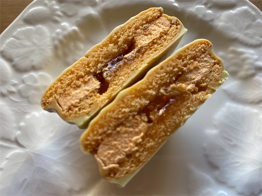 口に入れると、ストロベリーとブルーベリーのダブルのベリーの香りと味が口いっぱいに広がり、クリームは生で分厚くて、常温のチョコパイよりはふわっとしていて美味しく、ペロッと食べてしまいました。