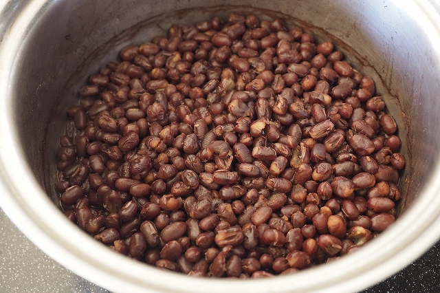 私は煮小豆を半量(250g)で作りました。この作り方で作ると水分がずいぶん減ったので、かなり足しました。