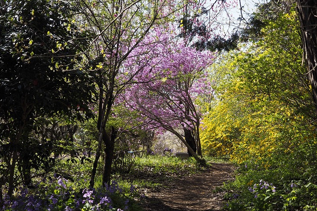 この日は黄色、ピンクを中心に色鮮やかな花が咲き乱れ、百花繚乱といった感じでした。ほうき桃も満開で空高くそびえていました。