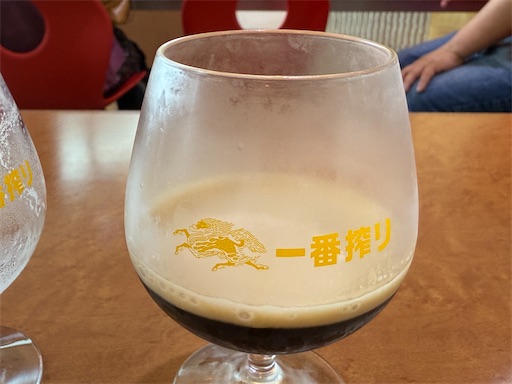 そして最後は「一番搾り〈黒生〉」をちょっとだけいただきました。思っていた通り、濃くて少し甘いビールでした。