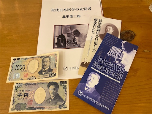 北里の展示物の方では10月31日まで特別展、「北里柴三郎が語るお札の話 世界を熟知した先人たちの功績」もやっています。お札の偽造防止の説明もたくさんあり、なかなか面白いです。