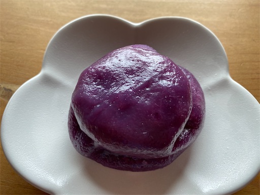 共通の材料の他に紫芋餡が入っています。見た目は紫色です。