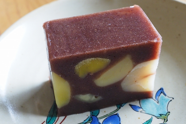 流石に要冷蔵だけあり、羊羹はラップと薄いビニールでくるまれていて、アルミのような袋には入っていません。私は今まで虎屋の練り羊羹やその他の和菓子屋の羊羹、また滋賀県名物のでっち羊羹などを食べてきました。栗蒸し羊羹はこれらとは全く違う味でした。出来たての羊羹の味なんだと思います。水羊羹とも違います。