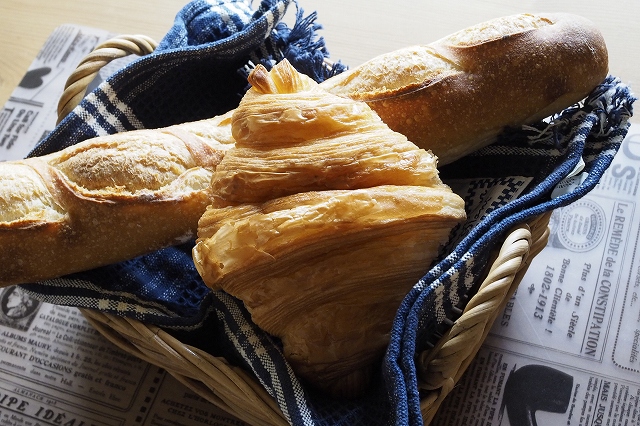 クロワッサン・フランセは490円+消費税、バゲットは1本210円+消費税でした。