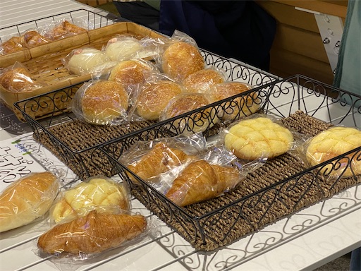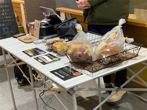 簡易テーブルの上にはいくつかのパン屋さんの商品が並べられていましたが、その中の1つは家の近くの人気のあるパン屋さんのモノで、何だか安心しました。