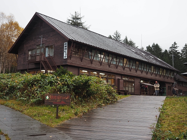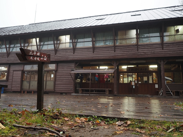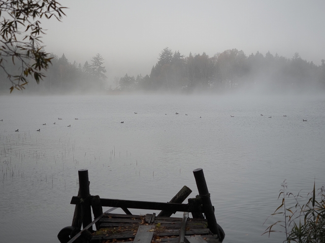 朝食を摂った後、ちょっと山小屋の周りを散策しました。昨晩中雨が降っていて、まだ曇っていたので、沼周辺では霧が立っていて、墨絵のような幻想的な光景を観ることができました。