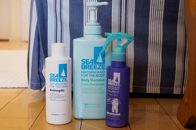 日本ではSea Breezeの商品は今では多種多様あります。オリジナルのAntisepticから始まり、ボディシャンプー、シャンプーにリンス、デオ&ウォーター、フェイス&ボディシート、リップ&ウォーターにハンドジェラートなどです。その中でも私のお気に入りは、オリジナル製品(Antiseptic) とボディーシャンプーやヘアシャンプーなんかです。