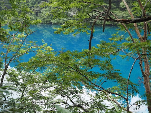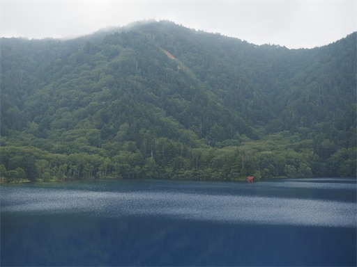 この池が大沼池といい、日によってコバルトブルーかエメラルドグリーンのきれいな色がみられます。この後、尾瀬のような湿原が現れて、鳥居をくぐるところから裏志賀山、志賀山の登山になりました。途中、上から大沼も見えたりしてとてもきれいでした。志賀山の標高は2035.5m、裏志賀山は2037.0mです。