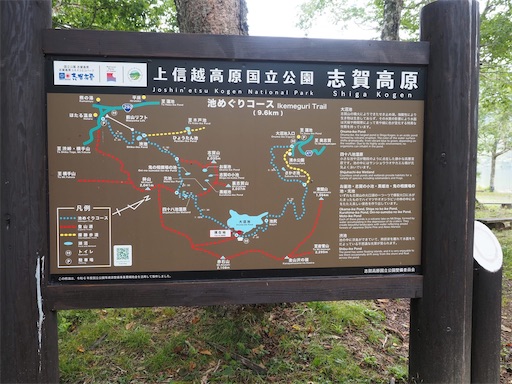 バス停を降りて大沼駅入り口(1688m)からスタート→池尻→大沼池(1731m)→四十八池湿原→裏志賀山→志賀山神社→裏志賀山→志賀山→渋池→前山山頂→前山サマーリフト→硯川(ほたる湿原)