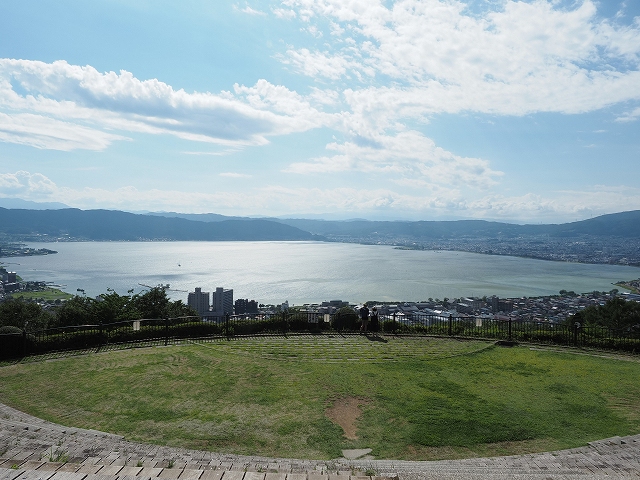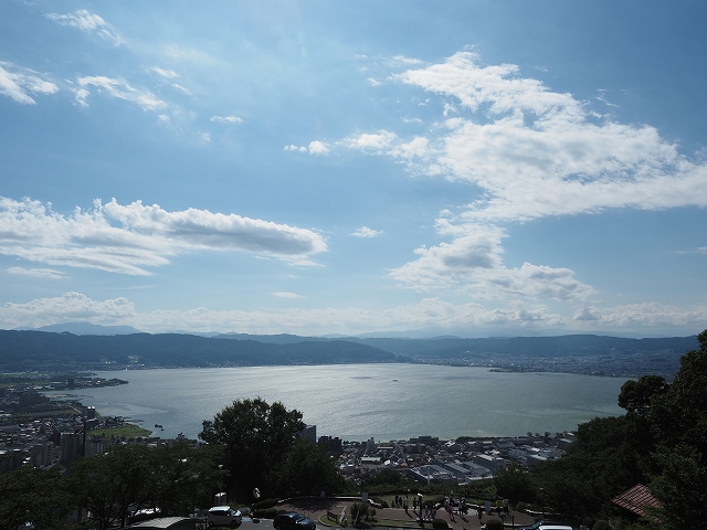 ここからの眺めは明示されていませんが、あのアニメ映画「君の名は。」に使われた場所だそうです。諏訪湖周辺が一望出来てとても素敵でした。私が行った時もマイカーやツーリングの人達で混んでいましたが、夕陽が眺められるので夕方が一番混んでいると思います。