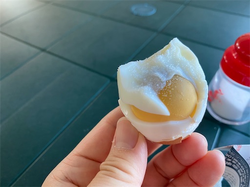 センターの中では間欠泉で作った茹で卵を食べることができます。柔らかいとは言われましたが、普通の味でした。1つ100円です。