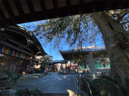 真言宗のお寺です。都指定天然記念物の18mのカヤの木がある他、巨大な石像が多いのと河童やガネーシャや大黒様などの石像もあり、異国の地に迷い込んだようなお寺でした。